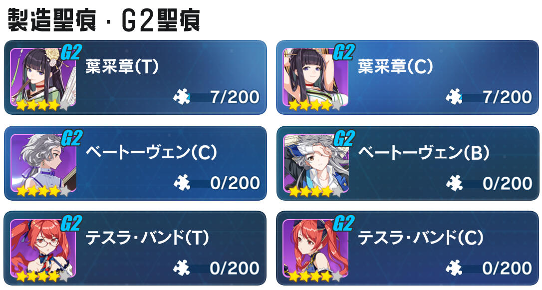 製造コストが高い=強いではないし、キャラの特性的に合う・合わないがあるので、戦乙女画面の本のマークから推奨装備を確認しよう装備ガチャを引くならアタッカーの武器が出るまで引いて、武器だけでも出たら撤退して製造聖痕で穴埋めというやり方が無・微課金にはおすすめ
